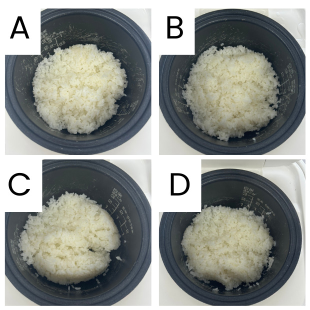 今回の実験では4パターンに分類し、炊き比べを行いました。