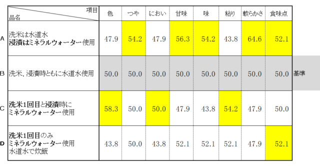 また、Aはつや・甘味・味・軟らかさ・食味点において点数が高くなりました。